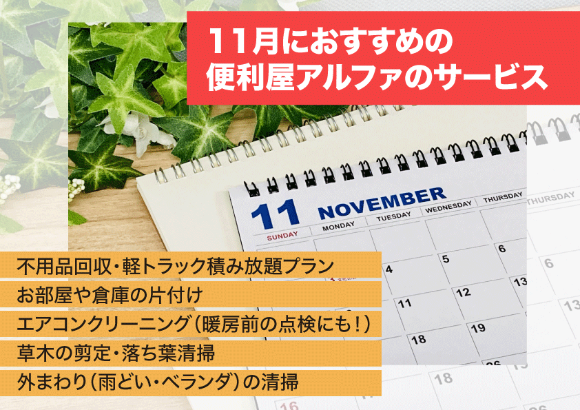 年末に慌てないための「11月スタートの整理整頓」、ぜひ便利屋アルファにご相談ください。