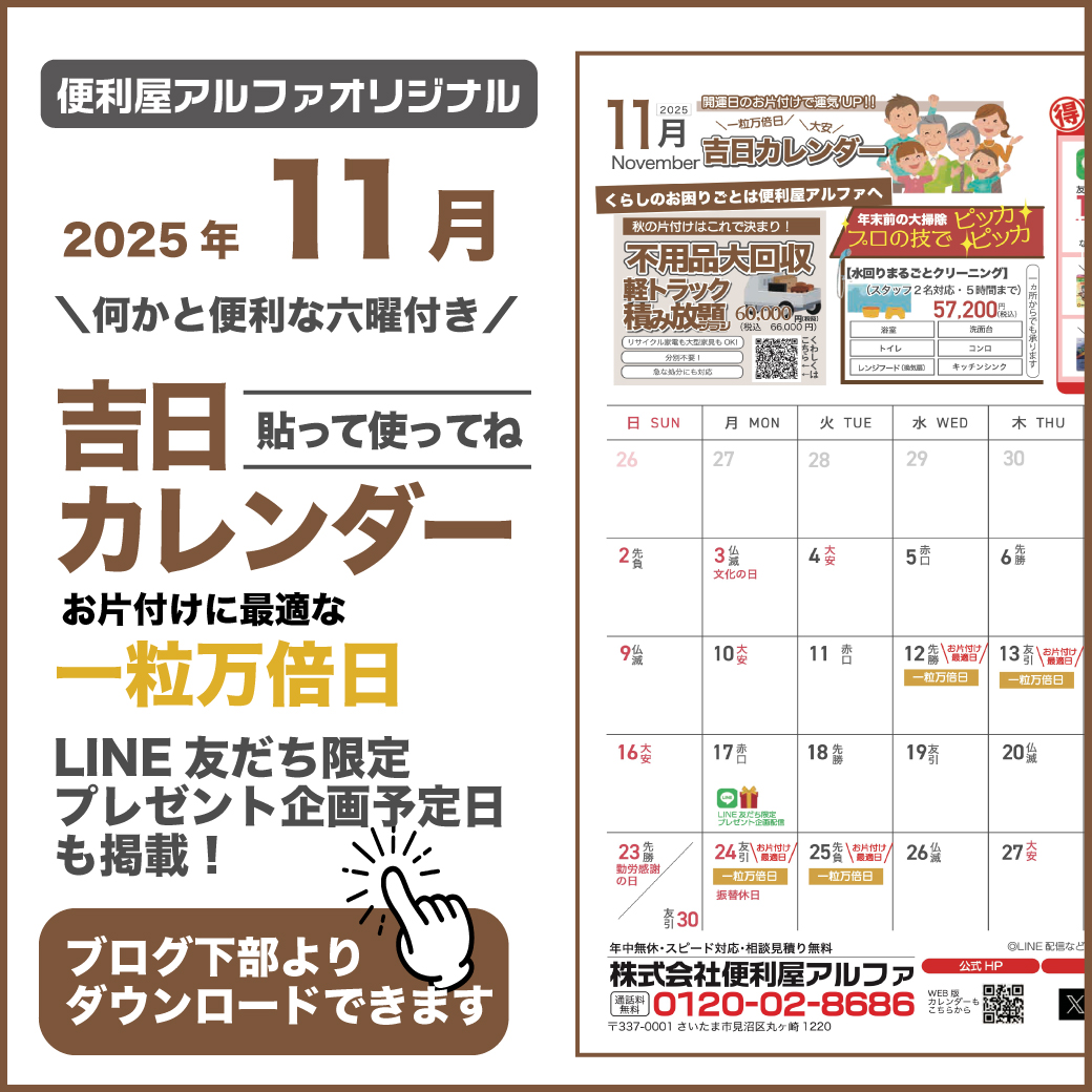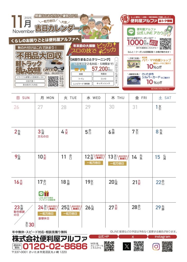 2025年11月便利屋アルファオリジナル吉日カレンダー