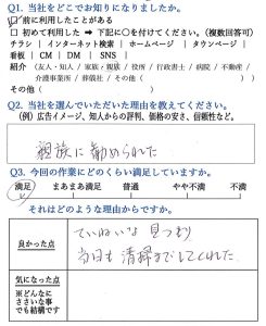 伊奈町のお客様よりアンケートのご回答をいただきました。