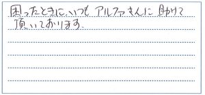 困ったときにいつもアルファさんに助けて頂いております。