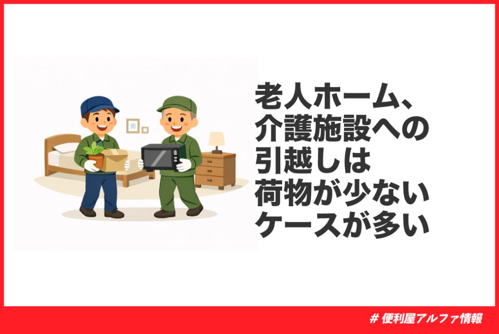 老人ホームや介護施設へのお引越しのように、荷物が少ないお引越しをご検討の方は、こちらの記事もぜひご覧ください。