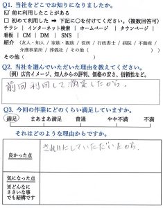 上尾市のお客様よりアンケートのご回答をいただきました。