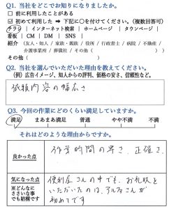 さいたま市岩槻区のお客様よりアンケートのご回答をいただきました。